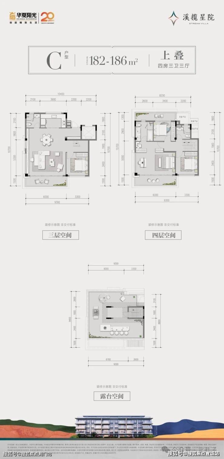 C户型上叠:约6m顶层观景阳台/餐客厅、书房开放设计/套房式主卧