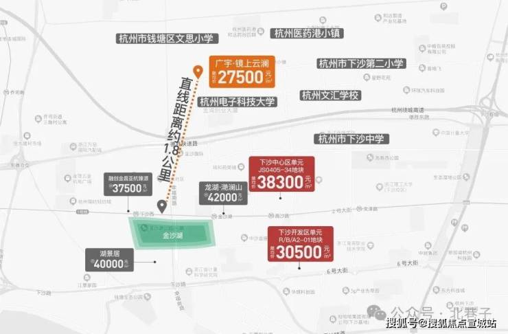 🌟【区域板块】项目择址杭州东部“城市之眼”下沙核芯板块--金沙湖之上,直线距离金沙湖约1.8公里。
