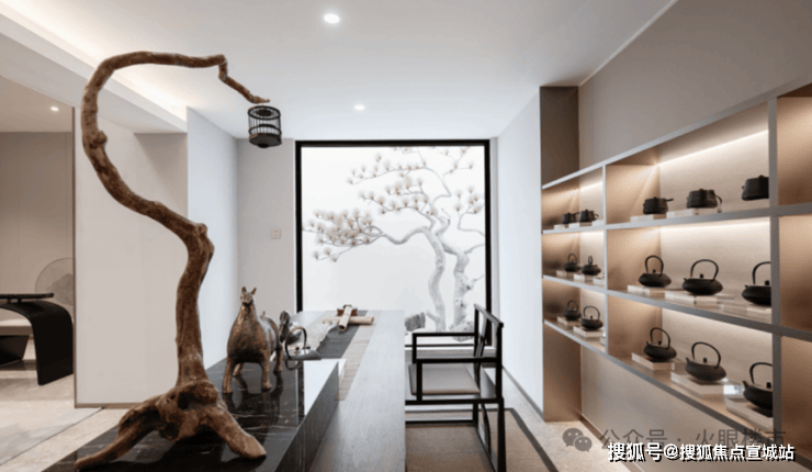 整体格局以“一轴”为礼序脉络,从中式门厅延伸至中心景观,形成归家动线;