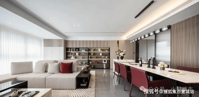 超50㎡的公共空间,功能灵活。除常规餐客厅外,还可增设西餐台、工作区与满墙收纳,实现多功能利用。