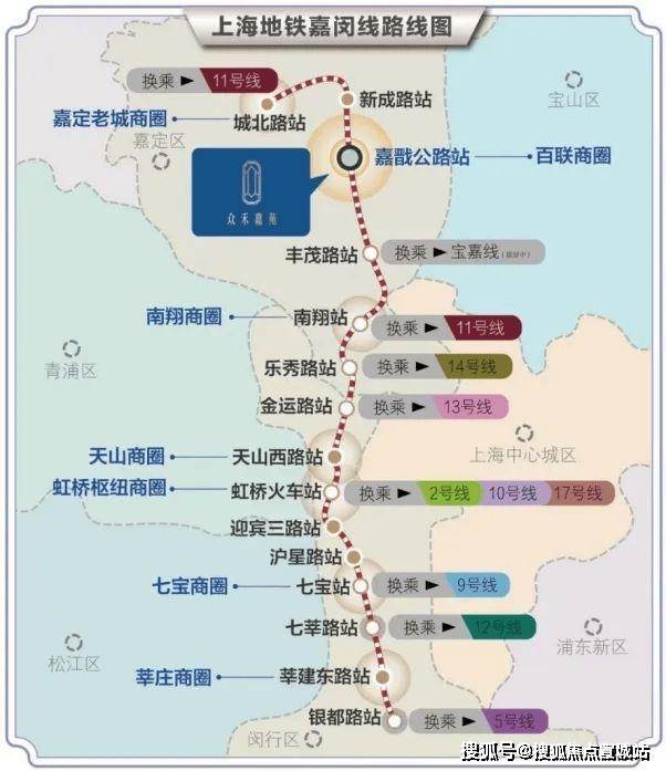 项目与“嘉闵线”嘉戬公路站的直线距离约为20米,是一处难得的地铁房产。与其他新城相比,新盘与地铁站的距离通常在600至1500米之间,因此,众禾嘉苑的地铁优势十分明显。从嘉闵线(在建)嘉戬公路站出发,乘坐2站即可到达南翔,6站即可直达虹桥枢纽。此外,沿途还可以换乘十余条轨交(包括在建和规划线路),能够快速到达虹桥枢纽、人民广场、陆家嘴、七宝和莘庄等核心区域。嘉闵线不仅是嘉定新城建设长三角一体化和虹桥国际开放枢纽的重要链接通道,同时也为居民提供了便捷的交通出行条件。
