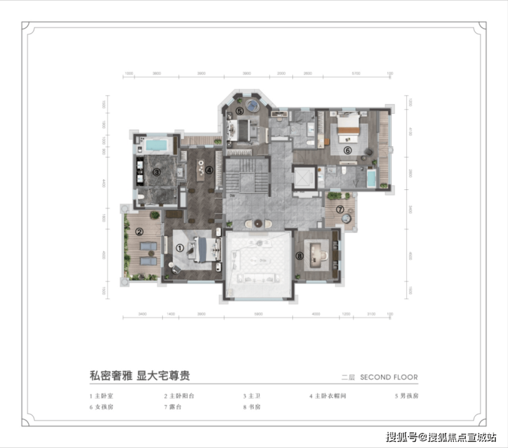 主卧配备了独立书法,步入式衣帽间,开阔露台,保证主人们的惬意生活;