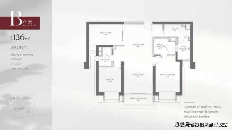 ③:建面136㎡做到了正三房配置,同级项目同面积段才做2.5房,苏河湾1号户型功能性更好,而且你能看到,户型较为方正、利用率高。