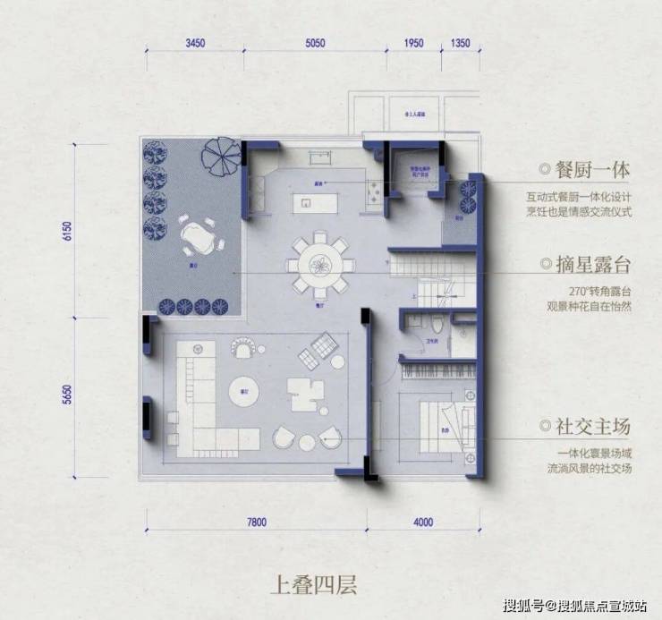③南向大面宽:在绿城的低密产品研发中,「南向大面宽」拥有非常关键的研发优先级。建筑面积约295平米的上叠户型与建筑面积约275平米的下叠户型,都拥有奢侈的约11.8米南向大面宽,每一个客餐厅、卧室套房都拥有更敞亮的采光与视野;客餐厨LDK一体化的设计,更是让叠墅的室内空间拥有与大平层一样的通透感。他们还在卧室套房之间设计了一个与阳台交融在一起的起居室,这里可以是你们家的公共书房,也可以成为卧室旁的兴趣空间。