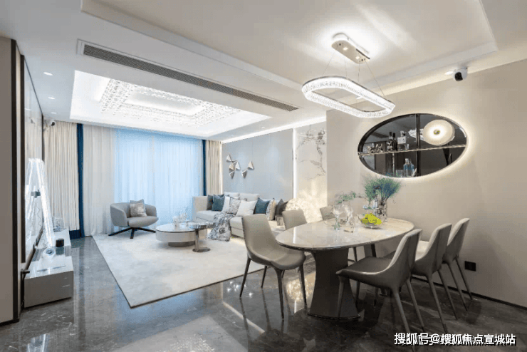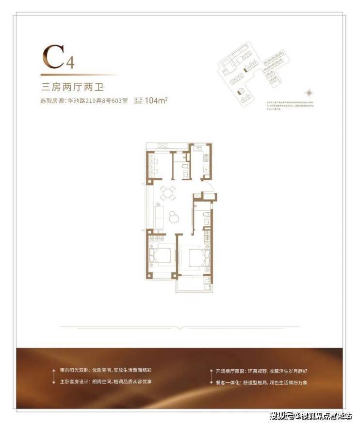 建面约104㎡的户型,能满足从二人世界到二胎生活的全生命周期需求,并且整体2-3开间朝南+客厅宽面阳台,整体的南向采光,视野以及尺度感很优秀,并不会感觉局促。