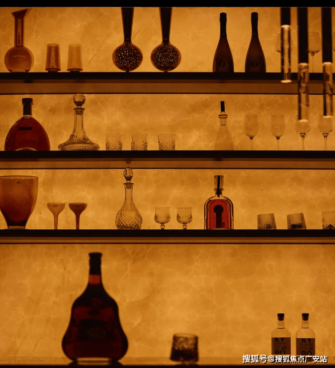 水吧与品茗区设置在同一空间,深咖色墙面与金色的色彩碰撞,形成城市所特有的简练与轻熟气质。
