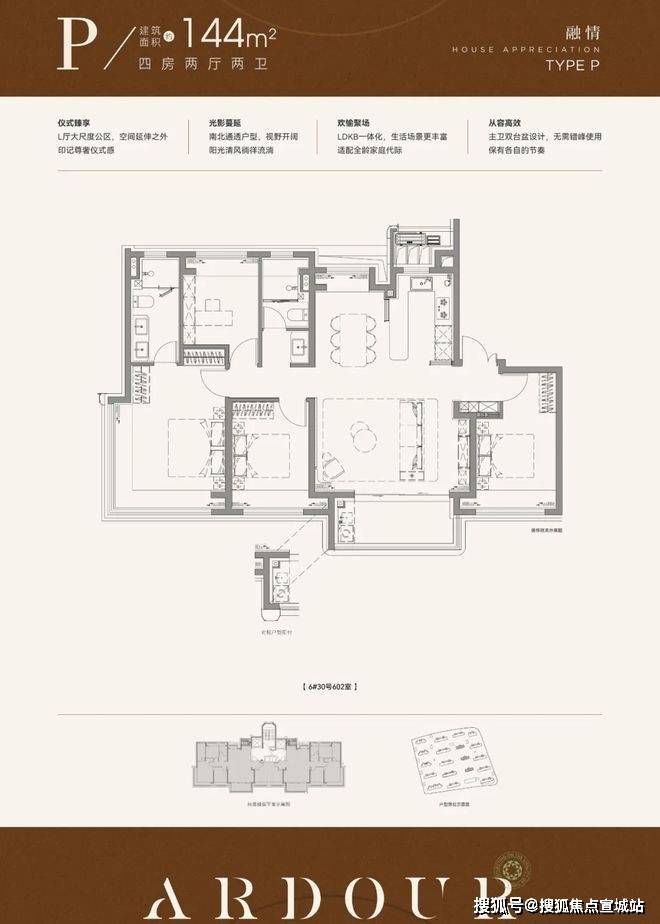 再来看下建面约144㎡4房,部分装标是有所升级的。