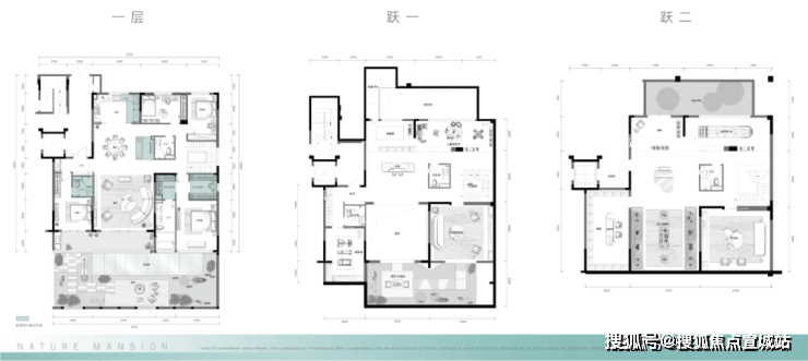 约700m²确实庞大,产品臻稀,考虑不当,就会陷入功能的混乱和无用中,辜负了这样优越的大平层“高配”户型。因此,我们首先分隔大块空间:一楼满足日常生活居住,跃层实现丰富的人生理想。