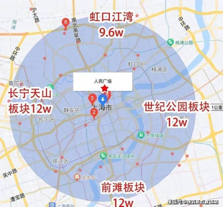 以人民广场8KM为半径,虹盛里售楼处电话:400-8787-554 往南前滩板块均价已至12w/㎡,西边长宁天山板块均价12w/㎡,东边世纪公园板块也是12w/㎡。相较之下,北边江湾明显是价格洼地。