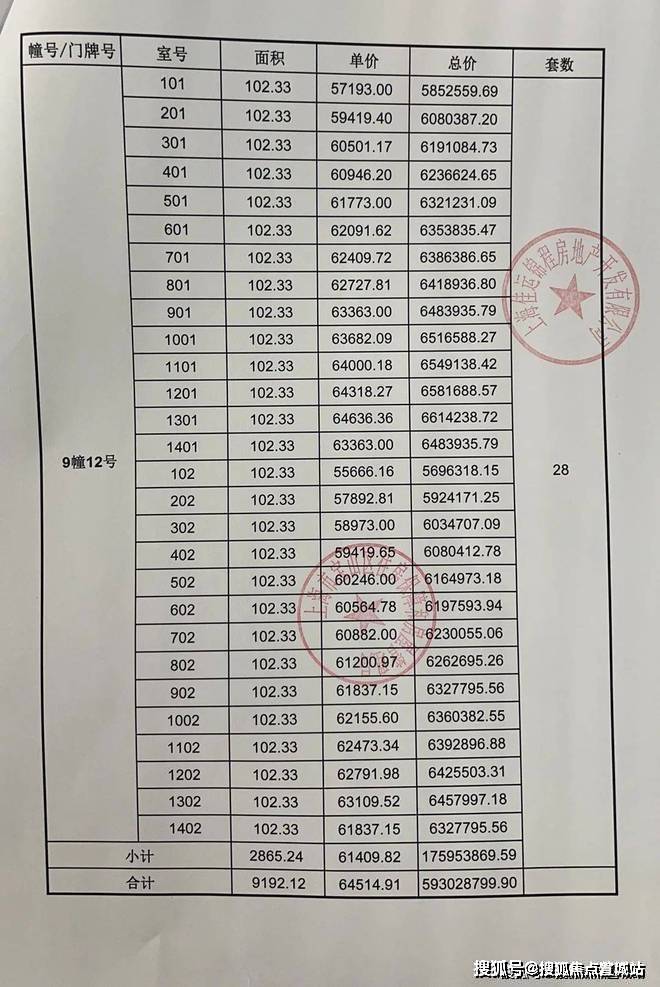 一房一价表发布: