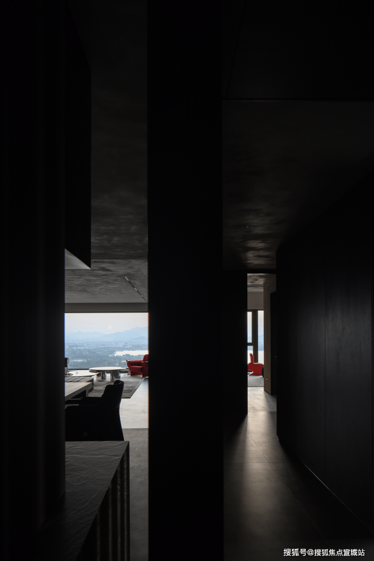 怀着对光与自然的敬畏,设计之初选择了木里木外的深色慕斯墙面质地,以朴拙胸怀更多怀拥光的璀璨,这不仅仅是一处居所的安置,也是生活方式于山水中的一种唤醒。