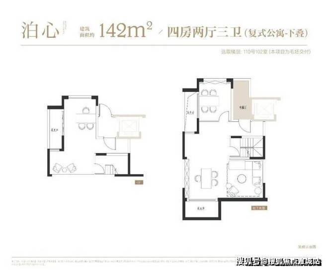 项目叠墅户型有建面约142㎡下叠,建面约139㎡上叠。