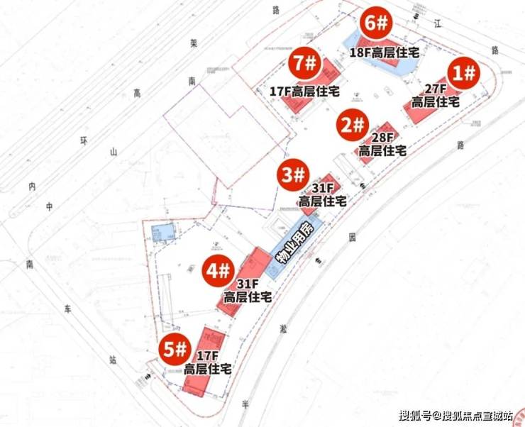 根据设计方案显示, 项目拟建设7幢高层住宅、1幢物业管理用房以及相应的配套设施(自持菜场、老年活动室、文化活动室),其中1#总高27层,2#总高28层,3#、4#总高31层,5#、7#总高17层,6#总高18层,每栋楼均首层局部架空。