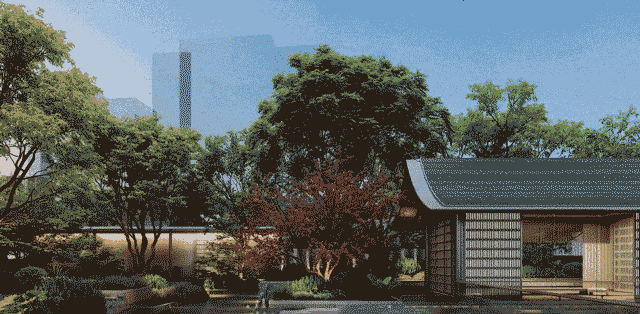 下沉式庭院,以古朴名贵的造型黑松,作为水景中的点睛之笔,营造出隐奢、静谧的艺术之境,定格场地的黄浦情怀。