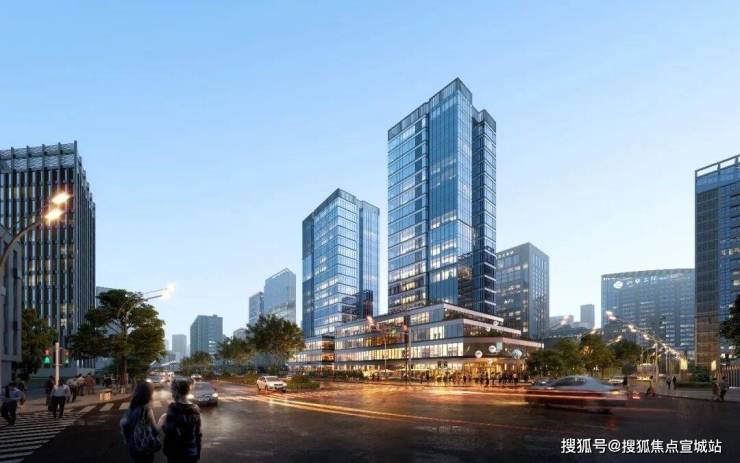 由4幢高层组成,其中2幢规划为精品商务酒店,另2幢为可售商业,主力户型约350㎡。全面玻璃幕墙在阳光下熠熠生辉,倒映着天光与江影。