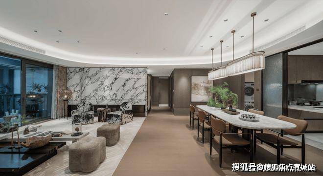 岩板、木饰面、皮革饰面柜体是摩登东方的生活本境