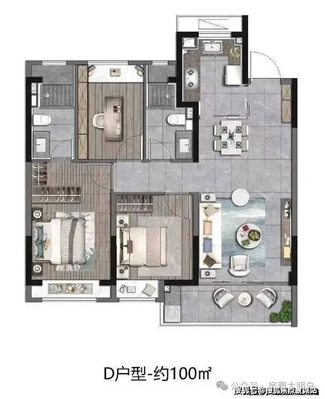 建筑面积约100㎡样板间实拍示意图