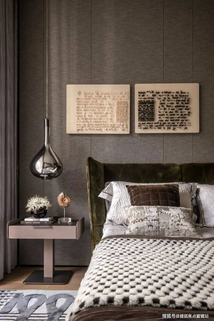 次卧的色调相对更为深邃,设计师通过不同的色彩选择,为静谧的氛围赋予了别样的诠释。有的空间明亮温暖,有的则内敛深沉,各种高品质材料相互搭配,编织出柔软而舒适的触感,再辅以恰到好处的艺术装饰,将空间的高级感提升到新的高度。