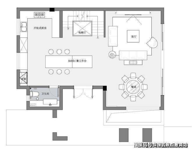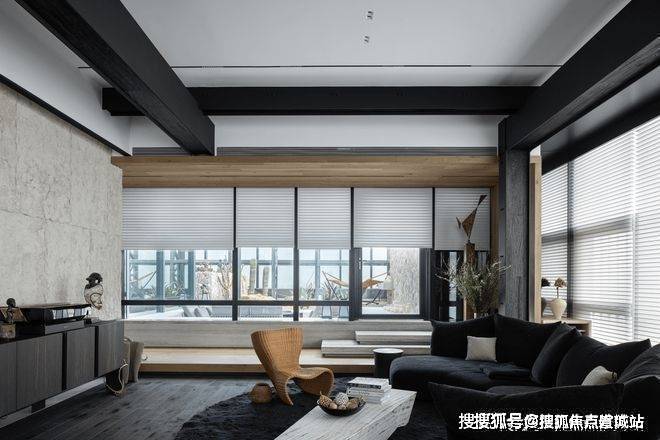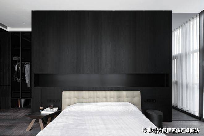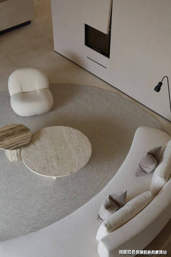 空间是光影的容器,自然光穿透白色的纱帘给会客厅加了一层摩登的滤镜。两侧纱帘光影通透,暗香浮动,几丝波影乍如烟。一处吧台,临烟火,酌清欢。烟火清欢,一半一半。