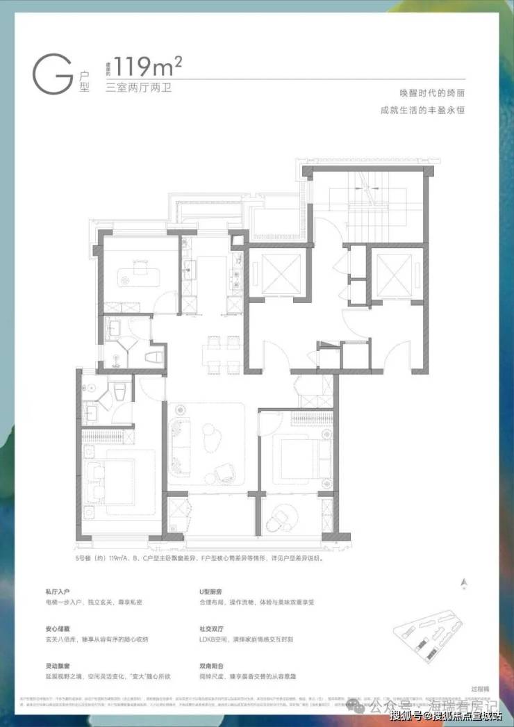 建面约119㎡三房户型: