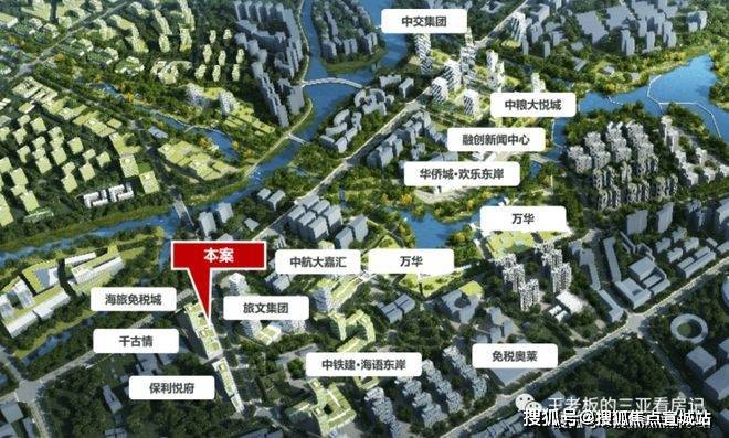 项目位于三亚市吉阳区迎宾路(海旅免税城北侧)。随着自由贸易港政策落地,在总部经济及中央商务区规划中,东岸单元作为建设大型综合消费商圈+总部经济核心区。汇集中粮、中交、保利、中航、中铁建、五矿等世界500强企业,已成为三亚城市功能上的中轴城心,凝聚着最重要的部门,昭示着三亚未来发展的方向,区域价值未来可期。
