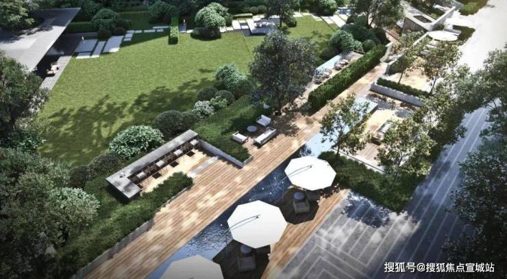 以自然作为设计语言:运用光线、水、植物等元素,并萃取高端酒店设计,呈现更多自然、舒适且松弛的多元生活状态,在社区内打造静心庭院、水榭林间、微风草坪等松弛雅奢的都市谧境。
