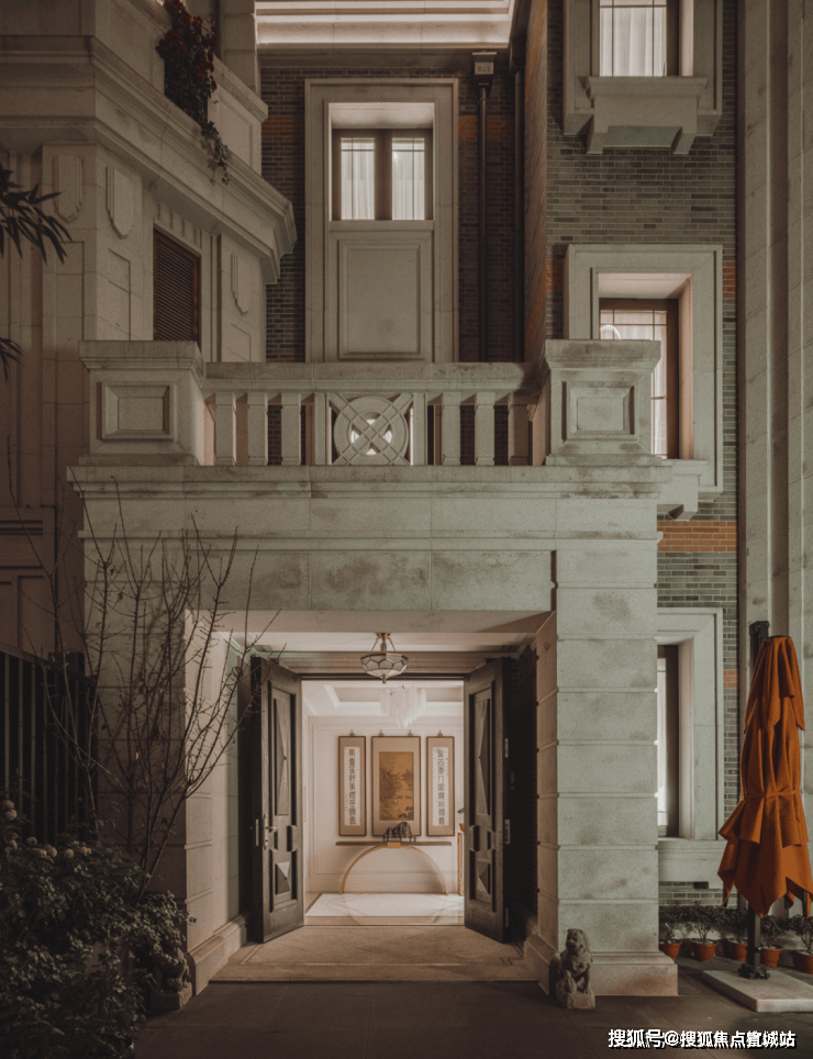地上三层、地下两层的别墅。从建筑风格看,承扬老城厢的海派建筑风貌,重塑里、坊、庭院的形式,拉近了人与人的距离,唤起了老上海人刻在基因里的念旧,又用现代的设计手法,极简的设计理念,把外立面做的干净利落,迎合当下审美。