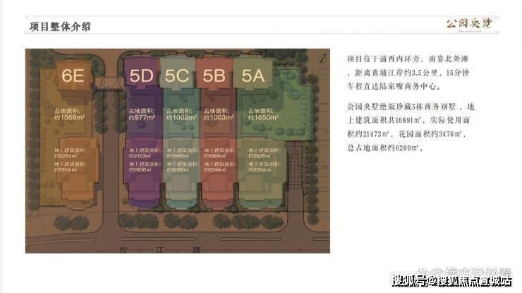 【公园央墅】一共有五套,其中东套为独立式,其他四套为连体式,每套面积在3634-5354平米,层高4.5米。