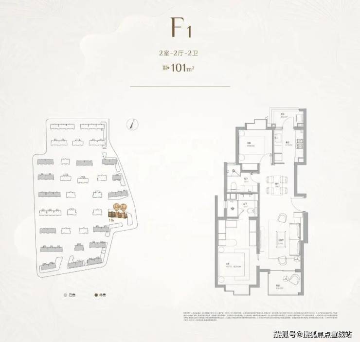 建面约101㎡2房2卫,LDK一体化设计;主卧套房配置步入式衣帽间+独立卫浴;南北双阳台系统,实现270°采光通风。