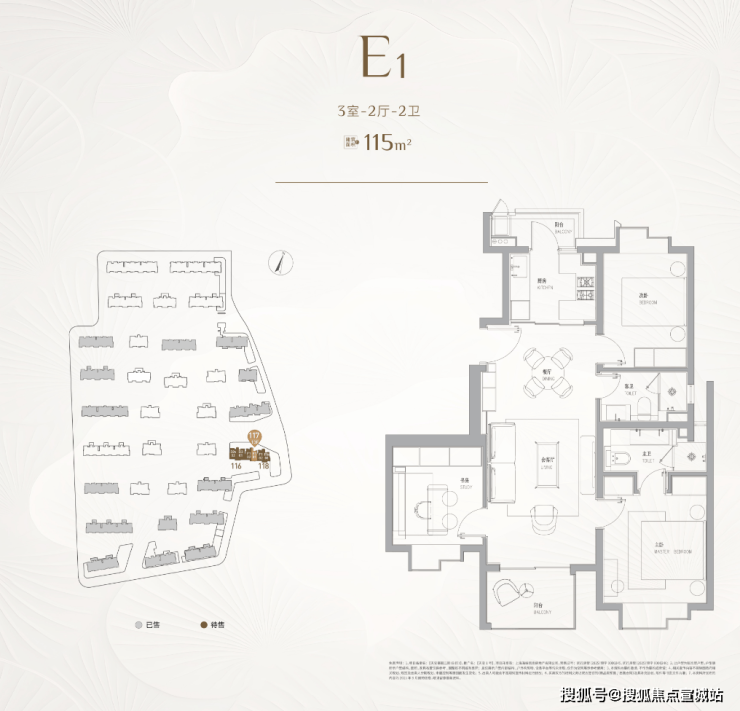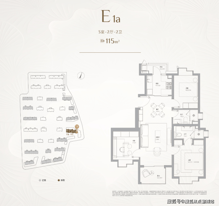 建面约115㎡的3房,三开间朝南的设计,户型的整体尺度感更大,餐厅甚至可以放下一张小圆桌。并且3房的实用性可以满足一个家庭的全生命周期需求。