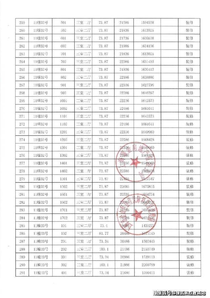 一房一价表如下: