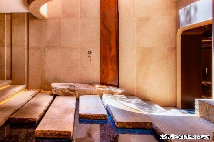 越秀·外滩樾的会所在地下三层。他们在会所中做了造型各异的奢石景墙,用各种隐约可见,来分隔和连接不同的功能空间。