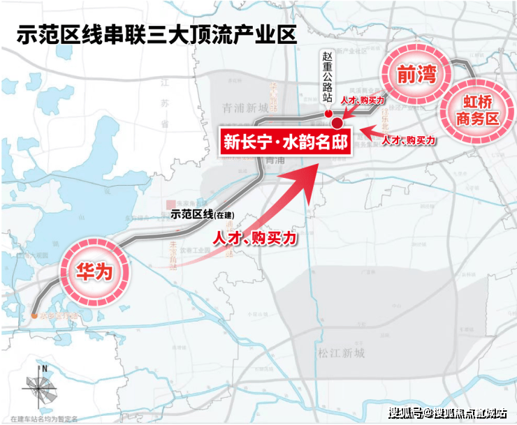 示范区线(在建)西连长三角、华为研发中心,东接大虹桥。从赵重公路站出发,3站虹桥枢纽。