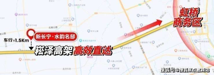 从家门口出发到崧泽高架赵重公路出入口仅约1.5公里,上高架后没有红绿灯直通大虹桥核心。整体只要6个红绿灯,自驾非常高效。