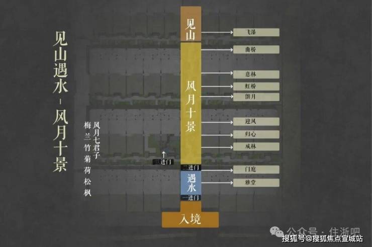 8.【宋风形制 重奢贵宅 】宋式美学:有宋一朝,风雅千年。久映颂月将领先世界千年的宋代审美,融入建筑与生活,宋风屋檐之下,传颂宋仕风雅。三进礼序:中国人自古讲究归家礼序,门第之尊;久映颂月将传统中式建筑的礼序空间融入整体的规划布局中,形成一坊八巷-置坊入巷-穿巷入户的三重归家礼序。坊巷规制:项目依照“山水典藏,湖畔宋境”的理念,坊巷规制排列8幢排屋,营造富具东方意境与传统美学内涵的人居作品。