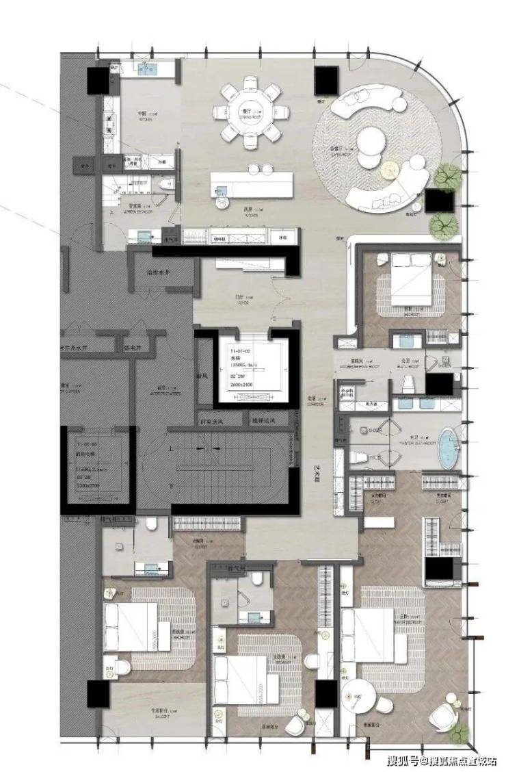 户型种类:大平层产品仅 98 席,面积段为 370-1080㎡。