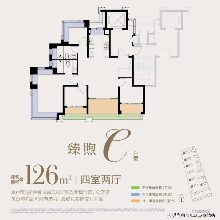 约126㎡4房:四开间朝南,附赠约30㎡,西边套一线临河,可享IMAX级观河景体验,全维度契合改善家庭的居住期待。