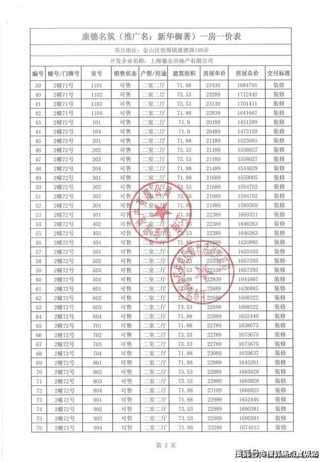 一房一价表如下: