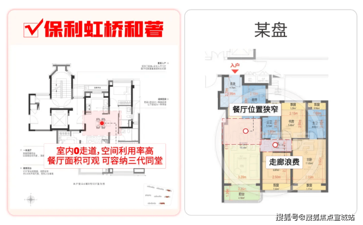 如果你熟悉上海市场,你会发现目前市面上的户型普遍会面临:利用率低、收纳空间少、有连廊、卫生间少/功能性差、卧室太小不够等问题。但保利虹桥和著的建面约104㎡3房2卫,却很好的解决了以上所有问题: