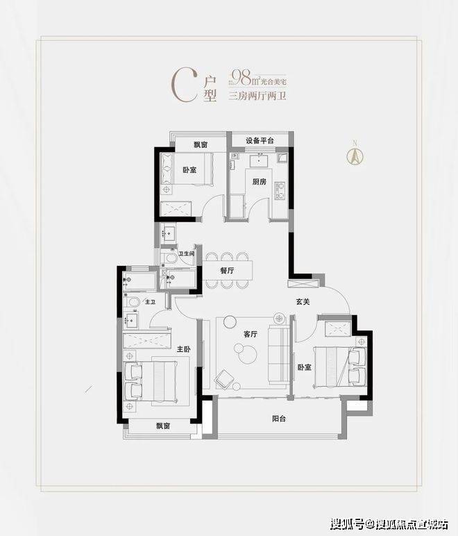 高层建面约98㎡3房2厅2卫