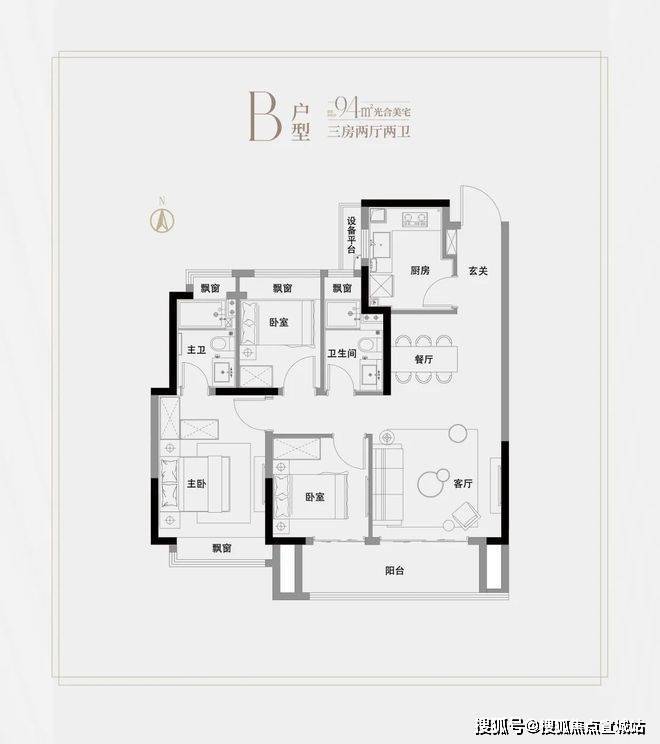 高层建面约94㎡3房2厅2卫