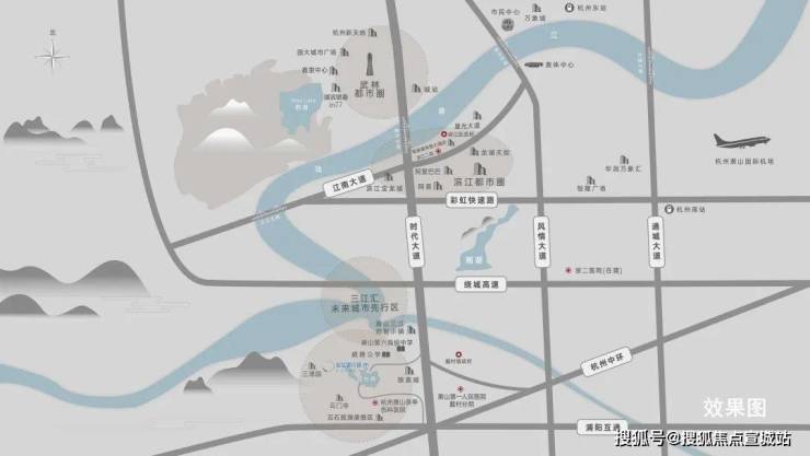 产业:滨萧一体化创智新城,三江创智小镇、V智造产业社区、浙报数字文化创业中心