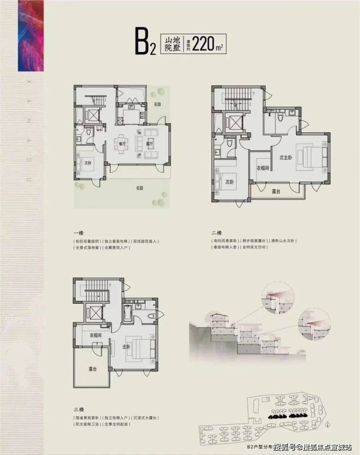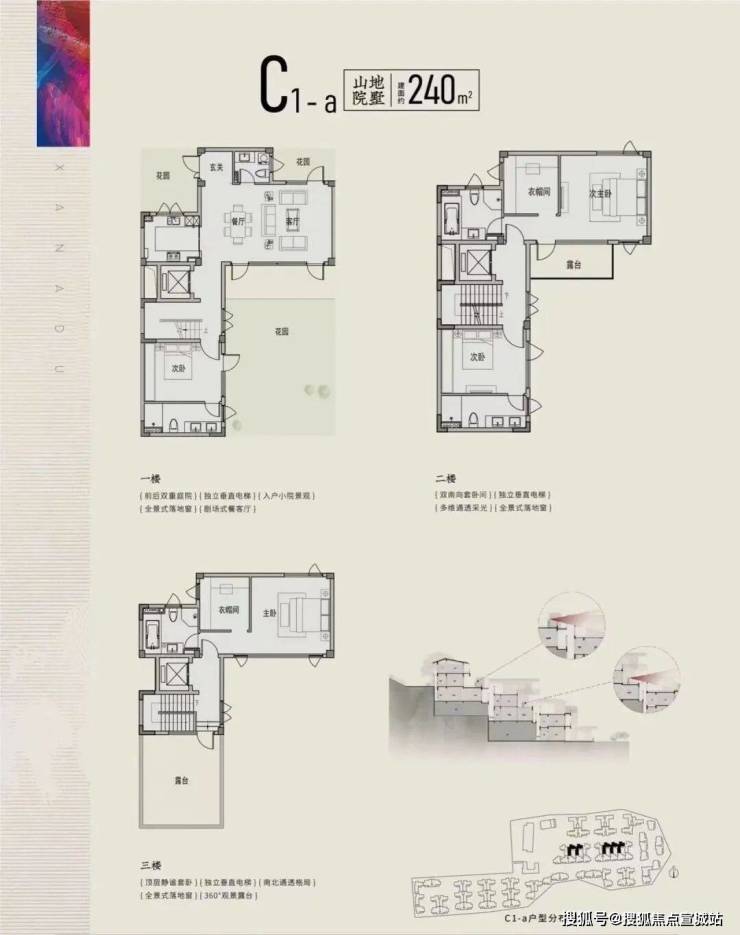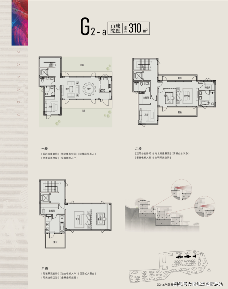 院落设计:每户均享独立坡地院落,南北双花园布局。