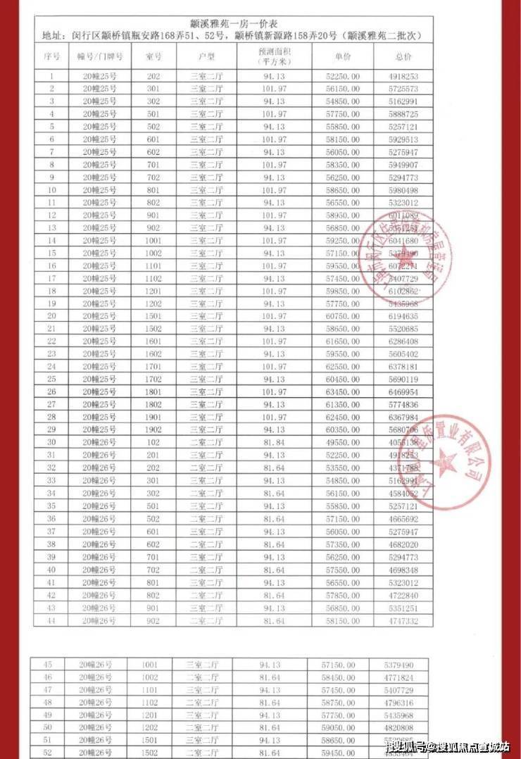 项目前期一房一价表▼
