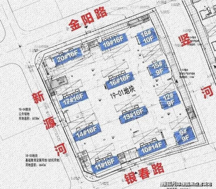20-01地块:拟建6栋16F高层住宅、2栋14F高层住宅、3栋10F高层住宅、1栋9F高层住宅以及若干配套用房。