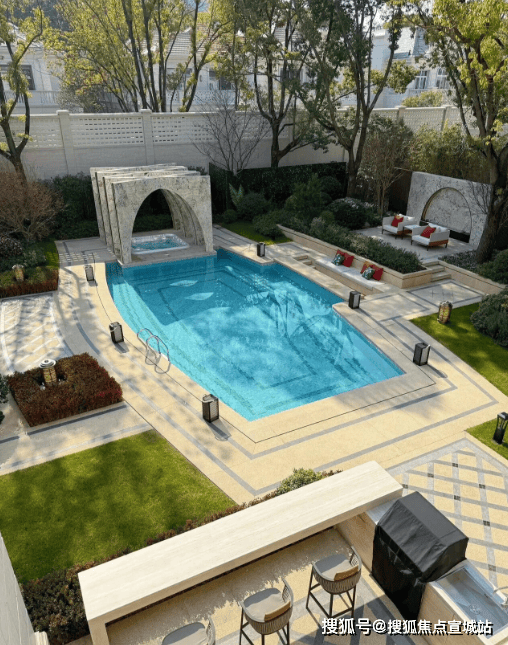 社区配套:户均花园带泳池,社区内设会所(含恒温泳池)、足球场、网球场等,绿化覆盖率达45%,以“森林秘境”为特色。