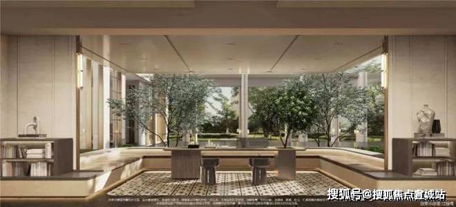 双轴线的设计,充分拓宽了视野面与观赏点位,环形回廊、精神游廊与下沉庭院通过立体景观平台相融,又创造出隔岸听泉的诗意场景。在会所、在架空层泛会所、在归家路上,每个重要生活触点,业主都能拥享独特景观和欣赏视野。