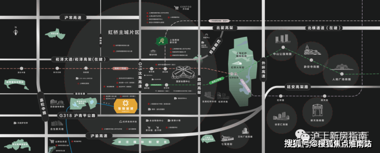 成熟的现代商业集群:虹桥食尚天地、希尔顿酒店等与项目仅一路之隔,距离项目1.5KM范围内,还有夏都小镇、永业购物中心等