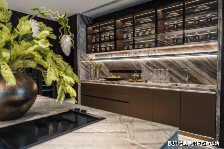 露香园天誉售楼处电话:400-8618-004在约491㎡户型设计上,门厅、客餐厅地面均采用了浅色系大理石,西厨吧台更是匹配了符合空间调性的东方木纹与龙飞凤舞石材。在厨房方面,配备了德国柏丽定制橱柜及嘉格纳厨电四件套和美诺Miele两件套等,并且卫浴空间更选用世界顶尖卫浴陶瓷世家LAUFEN劳芬,华为智能家居&三恒系统,让您尽享智能与舒适兼备的家。