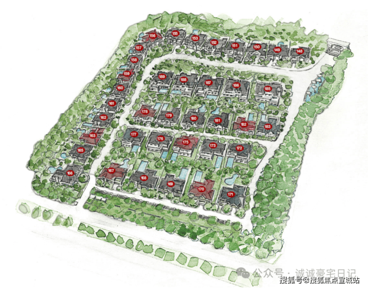 户型设计:地上两层、地下两层设计,含双车库、挑高宴会厅及南北双花园,户均占地 1.5-2.5 亩。部分户型配备下沉式酒窖、私人影院等。主力户型为 7 室 5 厅 6 卫,建面约 684-859㎡,使用面积超 1000㎡。